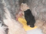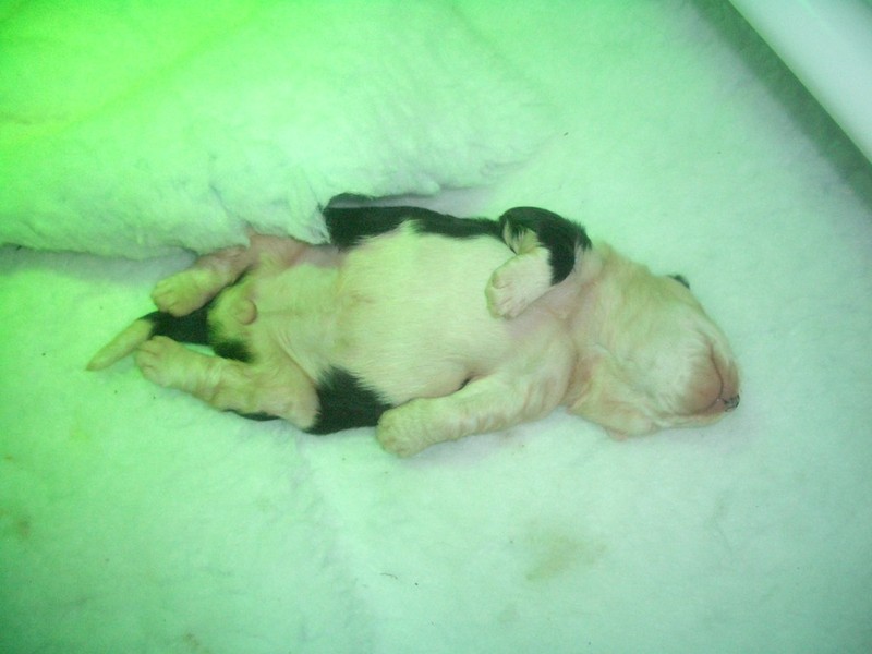 Due to Roxie only having the single puppy in litter 1, we felt she deserved a second attempt, she went to stud on Sunday 18th, Monday 19th, and Tuesday 20th March, and as usual Sonia's dog (Melowdee Major Tom) did us proud. On the 16th April she went for her scan and a check up and we were delighted to see at least 4 embryos. We waited with baited breath as the time drew near and at 5am on Thursday 17th May Roxie went into action. In all she had 6 puppies 2 x Dogs & 4 x Bitches the last arriving at 8.15am that morning.